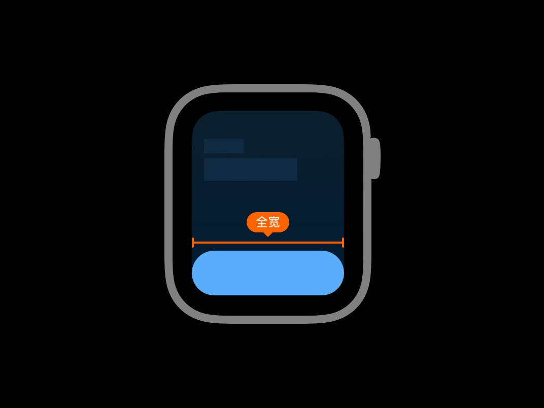 因 Bezel 的存在,当前的 Apple Watch 还不能称为真正的全面屏。如果可能,将按钮、列表项等元素横向撑满屏幕,不仅能从视觉感知上尽可能增加无框感(frameless),还能充分利用原本就比较紧缺的屏幕空间。