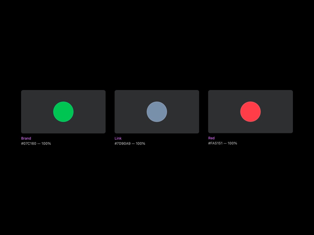 为了方便在设计过程中使用语义化颜色,我们推荐在 Sketch 中使用颜色变量(Color Variable)进行底层色彩体系构建。如下图所示,是微信 Apple Watch 版中非常常用的三个颜色变量: