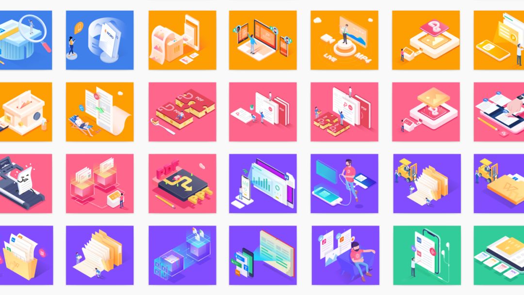 这是我们目前小工具引导页的插图库,已经确定移动端引导图统一,所以这套配图也会逐渐完善,每个小工具都会对应一个2.5D插画,所以在设计应用页的推荐位的时候,就考虑直接用这套配图,一方面可以节省很多设计资源,另一方面保持了入口和说明页视觉统一。