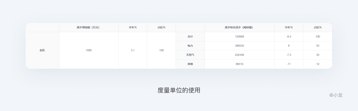 为便于用户对数据进行对比分析,可以在原始数据的基础上给出差值、升降变化等数据处理结果,减少用户数据加工的过程,直达用户获取信息的目标(需要明确用户目标),提高用户的阅读速度。