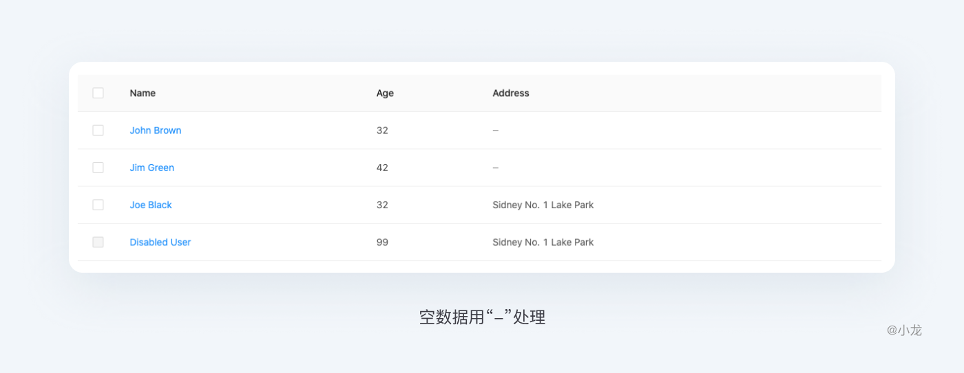 行高是非常重要的参数,直接影响着阅读体验。较小的行高承载更多信息,让用户无需滚动鼠标即可看到更多数据,但会降低扫描效果,导致视觉解析错误。适宜的行高使得数据更易于被阅读,但这不代表行高越大越利于阅读。