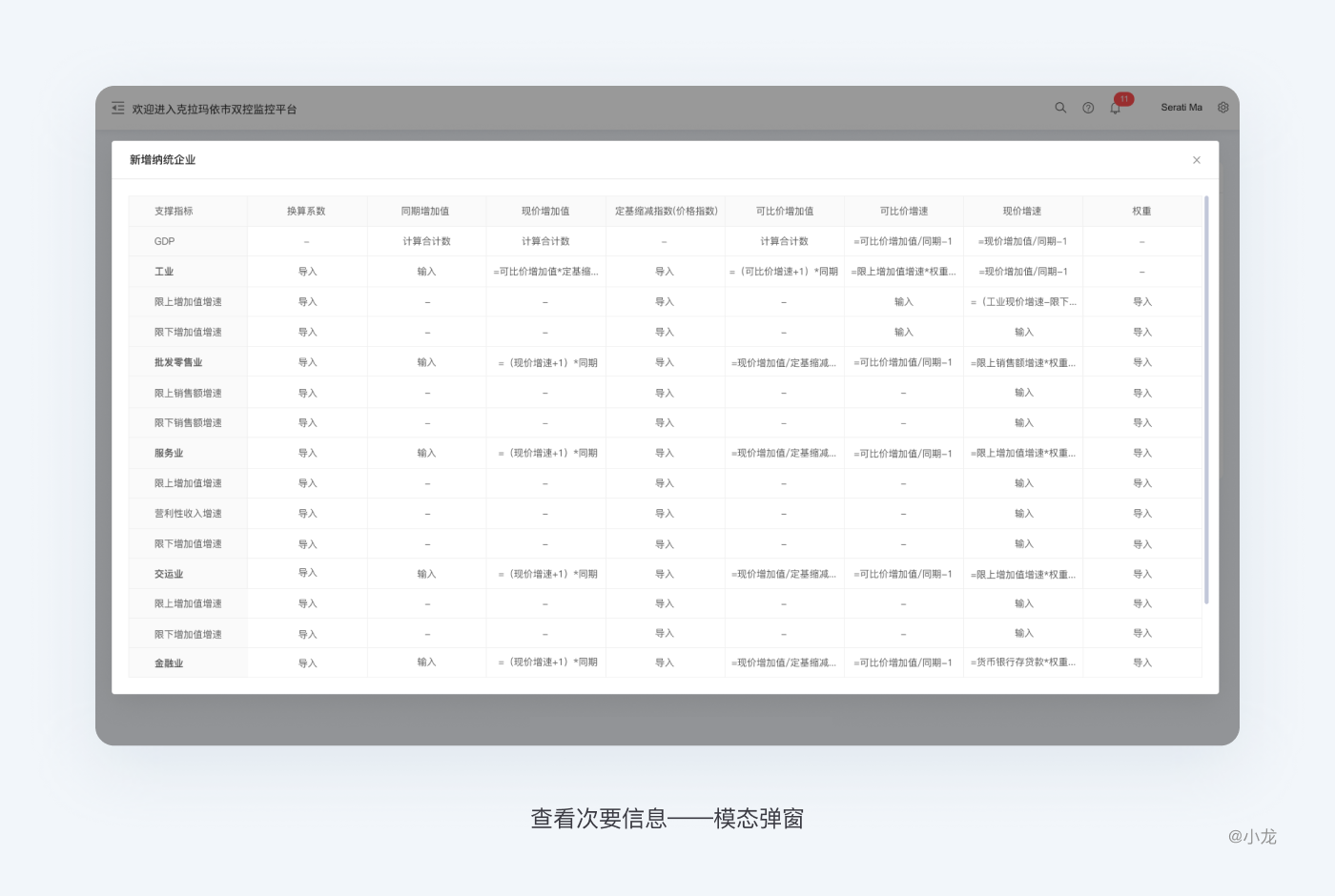 包括模态弹窗和非模态弹窗,模态弹窗是仅支持打开一个弹窗进行详细查看,非模态弹窗是可以同时打开多个,并允许拖动弹窗位置进行信息对比。