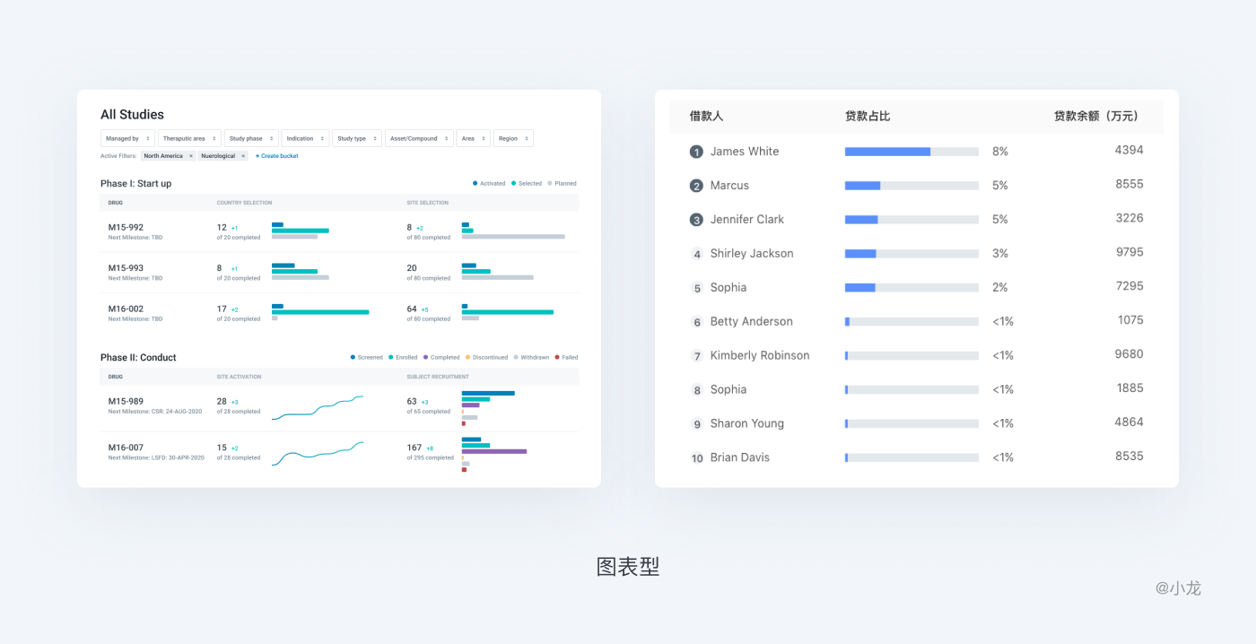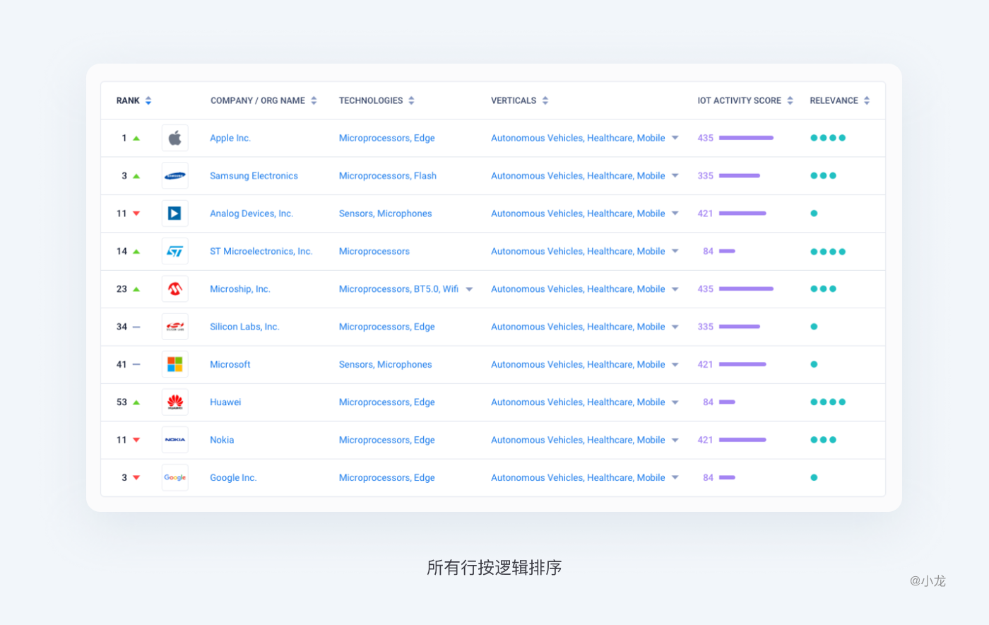 同时可以对行内信息进行扩充,进一步弱化表格形式,丰富各类信息的视觉呈现,同时兼顾行与行之间的关键信息的对比,如上文表格布局提到的图表的使用。
