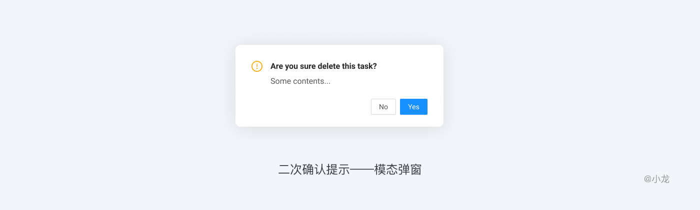 在执行某些无法撤销的操作时,点击删除后,出现模态弹窗进行二次确认,在当前页面完成任务。同时禁止滥用模态弹窗进行二次确认,就既打断用户心流(无法将上下文带到弹出框中),也无法避免失误的发生。