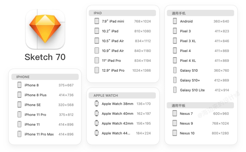 逻辑像素(Point)可以理解为是程序员在用代码绘制页面时所用的尺寸,也被叫做“1倍图尺寸”。比如Sketch中对应的机型尺寸