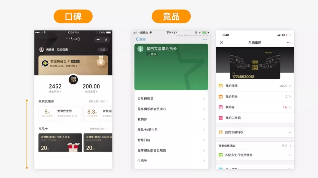 会员的个人中心页提供了各个资产管理的入口,区别于市面上竞品对资产入口的处理,我们将信息层级进行了扁平化处理,前置透出各类权益,让用户对权益资产有明确的感知,促进用户到线下进行核销。
