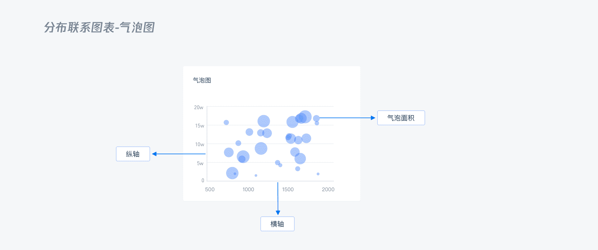气泡图是一种多变量图表,是散点图的变体,气泡图最基本的用法是使用三个值来确定每个数据序列,气泡的大小是映射到面积而不是半径或者直径绘制的 。