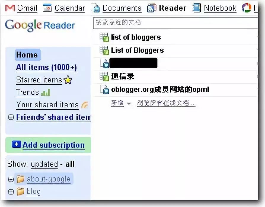 但对于喜欢阅读的人来说,光是主动订阅是不够的,后来 Google Reader 出来一个我很喜欢的功能:看朋友分享的文章。如果你在 Google 里加的朋友足够多,你的阅读几乎是可以无限延伸的,而且,因为大多数朋友和你臭味相投的,你往往能在这里看到你真的关心,但又没有订阅的内容。