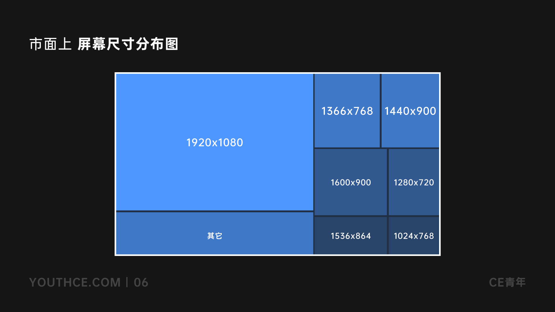 如果我们把 1920 x 1080 以下的分辨率都定义为小屏,则有39.55% 都是小屏幕用户