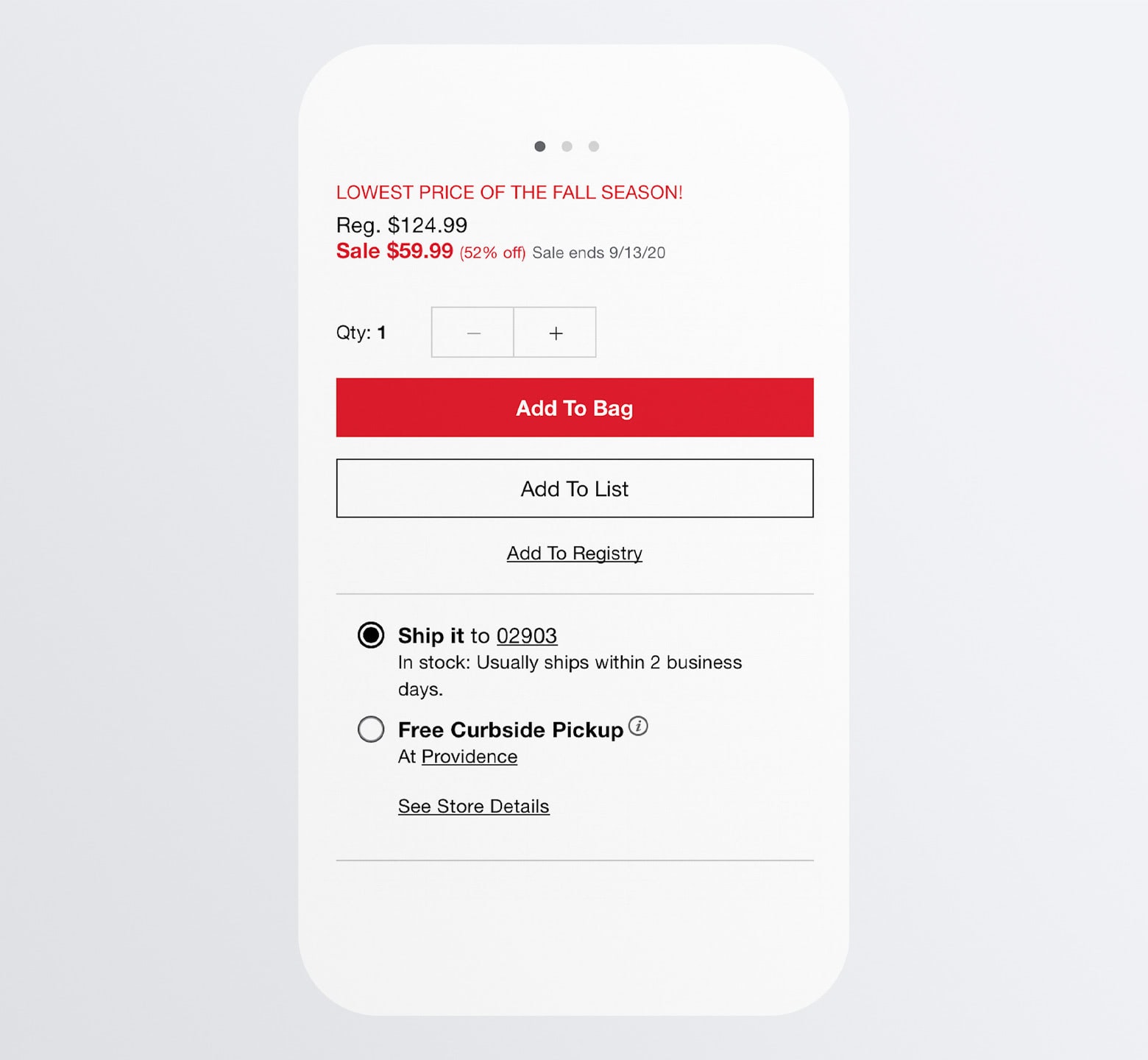 “添加到邀请函”是第三个 CTA选项,这也解释了为什么它的设计没有按钮形状。虽然Macy百货公司很可能是人们婚礼或婴儿满月酒送礼的一个受欢迎的来源,但这个相比一般用户并不普遍,因此没有必要在设计中给予它太多的强调。