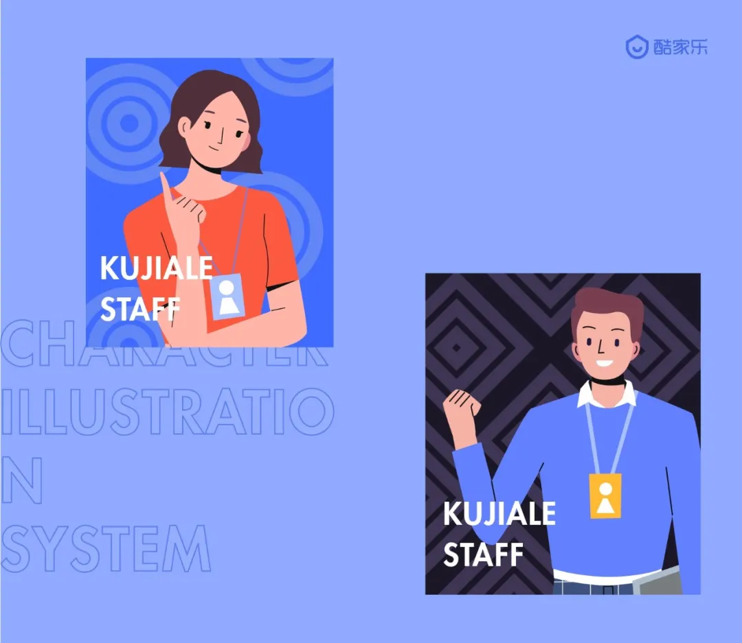 在风格探索的过程中,为了满足不同业务场景情况下的应用,根据酷家乐用户分析,我们围绕5种常见的职业进行人物角色设计,结合其职业特点赋予角色不同的视觉形象。