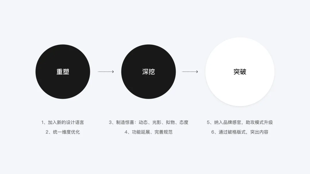 在体验升级的同时,我们决定基于行业差异化,从以下几个目标对平台进行升级:重塑、深挖、突破。