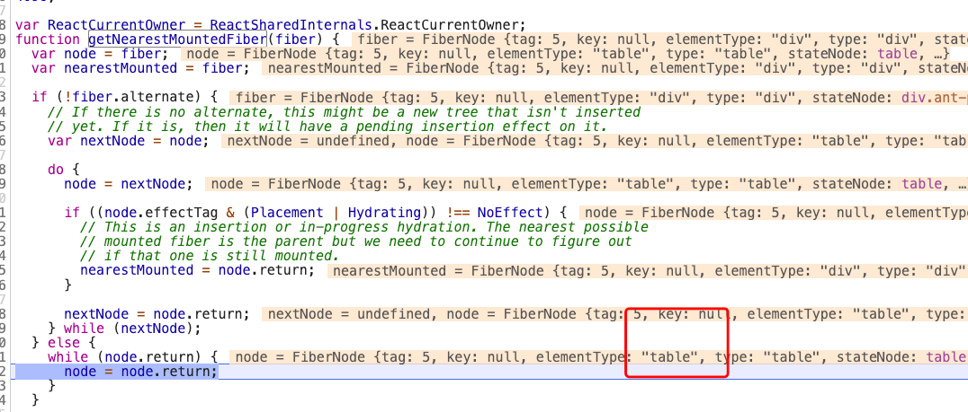 attemptToDispatchEvent函数执行getNearestMountedFiber函数中会发现,tag=5元素节点是从目标节点向上层层关联,我在操作的时候,虽然点击的是Popconfirm的元素(挂载body上),但是在冒泡的时候还是会关联上包裹在它外层的元素。