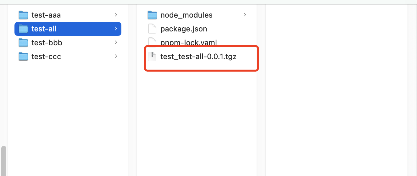 当执行 npm pack 时会生成一个压缩包,{"key": "value","name": "test_test-all","version": "0.0.1","description": "项目描述...","main": "index.js","license": "MIT","dependencies": {"test_test-aaa": "link:../test-aaa"},"devDependencies": {"test_test-bbb": "link:../test-bbb"},"bundledDependencies": ["test_test-aaa","test_test-bbb"]}