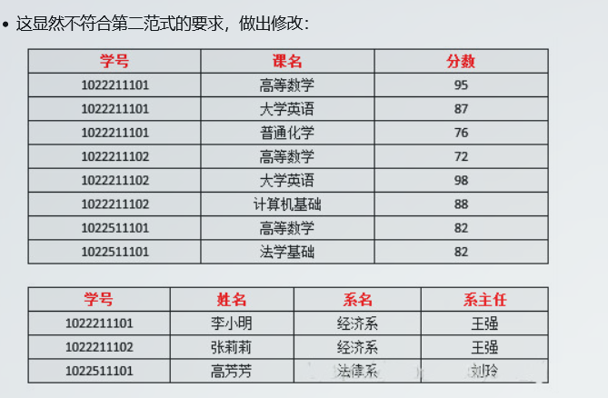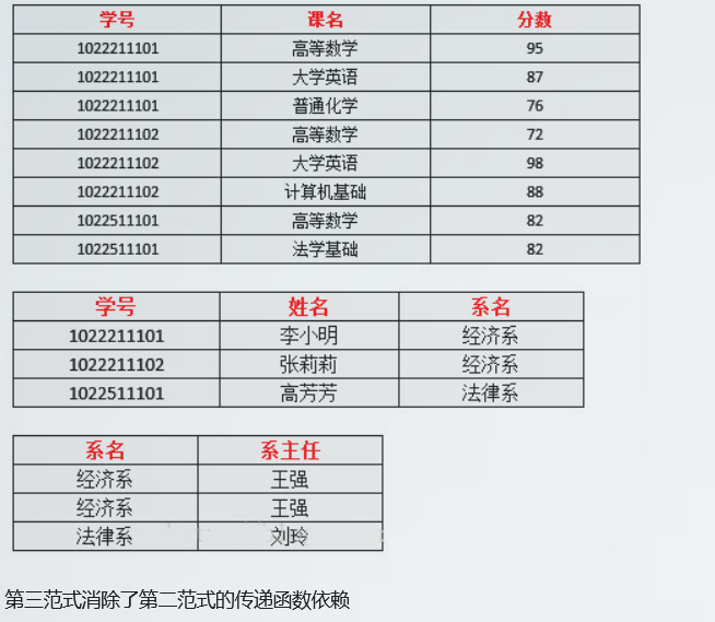 知道系名可以推出系主任,即系主任依赖系名,系名依赖学号,非主属性对主属性学号存在传递依赖关系,不符合要求。