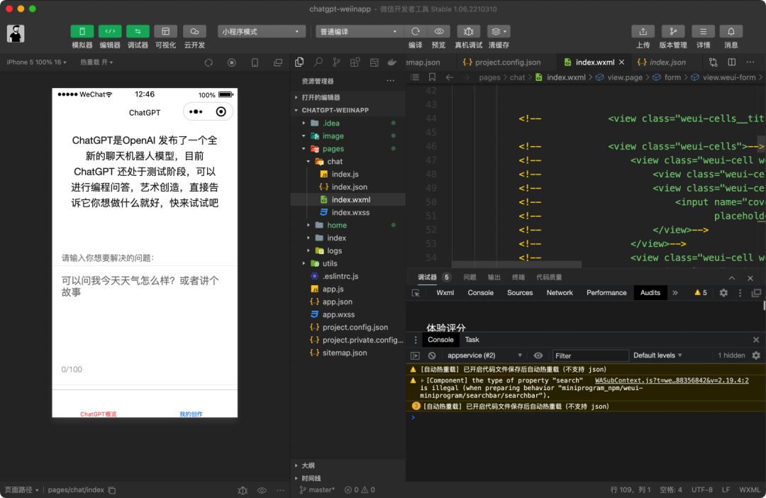 在《ChatGPT-地表最强AI模型!要消灭人类?》、《算法工程师深度解构ChatGPT技术》两篇文章中,我们分别囊举了ChatGPT的丰富玩法并解析其工作原理。如果你对相关内容感兴趣,欢迎回溯围观~公众号的粉丝朋友们在评论区畅想了更多ChatGP应用实践,也有粉丝表示想要亲自体验下其奇妙之处。此次,我们邀请腾讯云开发者社区开**发者由浅入深带你动手开发一个ChatGPT微信小程序,其中会详细介绍开发环境准备、项目实现、服务接口搭建、腾讯API网关接入、部署等环节。**