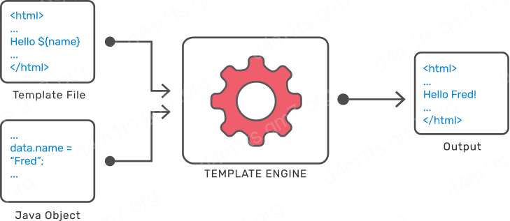大多数模板语言都允许您通过直接使用 HTML 标记或使用模板的本机语法自由输入内容,这些内容将在发送 HTTP 响应之前在后端呈现为 HTML。例如,在 Freemarker 中,该行将render('Hello ' + username)呈现为类似Hello Carlos.