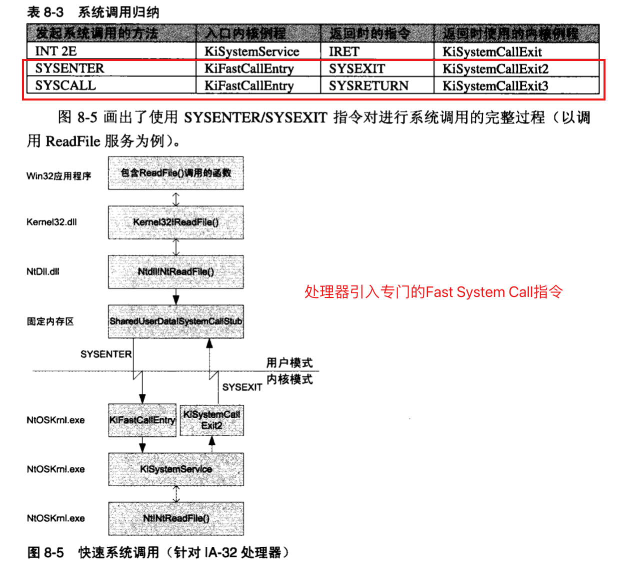 - 应用程序代码运行在用户模式下(Ring 3),操作系统代码运行在内核模式下(Ring 0),处理器在硬件一级保证高优先级别的数据和代码不会被低优先级的代码破坏。一旦用户空间代码访问内核空间数据,处理器会产生保护性异常(#GP)。用户态程序通过系统调用从用户态模式切换到内核态,从而间接访问内核空间中的数据、间接执行内核空间中的代码。见后面Ntdll.dll笔记。