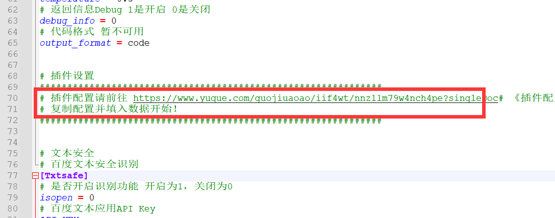 请各位请复制相关高亮块中的参数,复制到软件目录config/config.ini目录中 插件位置,具体如图: