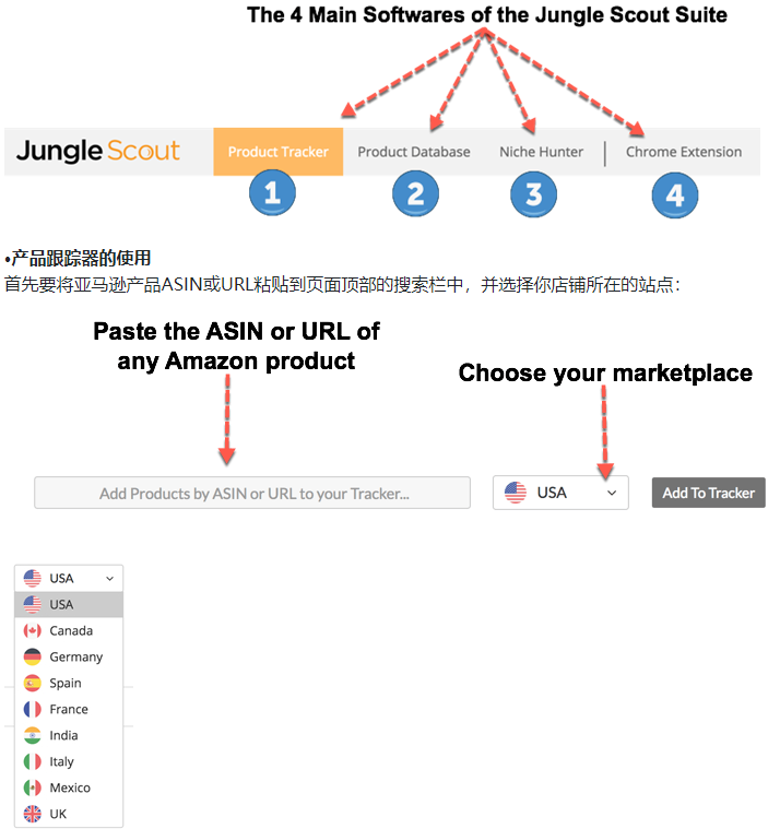 · **用户界面可以看到Jungle Scout 4个最主要的套件: