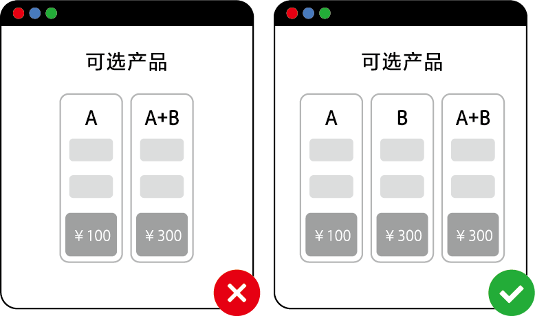 假设有产品 A 和 B,以下是顾客可以选择的选项: