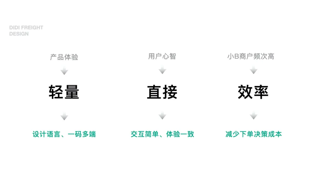 基于对货运市场的用户画像、核心诉求,滴滴货运的设计主要围绕以下 3 个关键词展开: