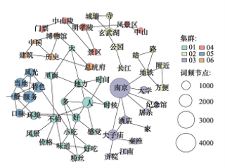 对目的地形象成分的研究结果显示,共现网络呈现6个节点群。游客感知的南京整体形象由景点、美食、交通、历史、建筑构成,主要源于旅游吸引物和公共基础设施维度,这也进一步验证了目的地形象感知维度的重要性存在差异。