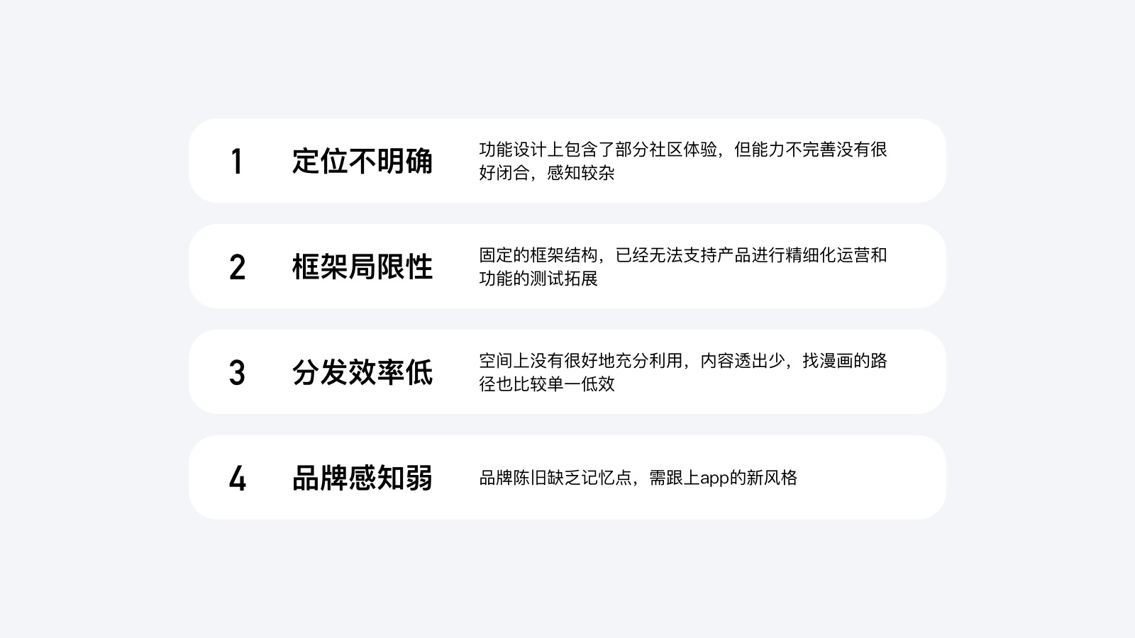 我们也通过内容单元和浏览节奏的变化和调整,以吸引无明确目标的用户,更愿意去刷 feeds 去获取可能感兴趣的漫画内容。