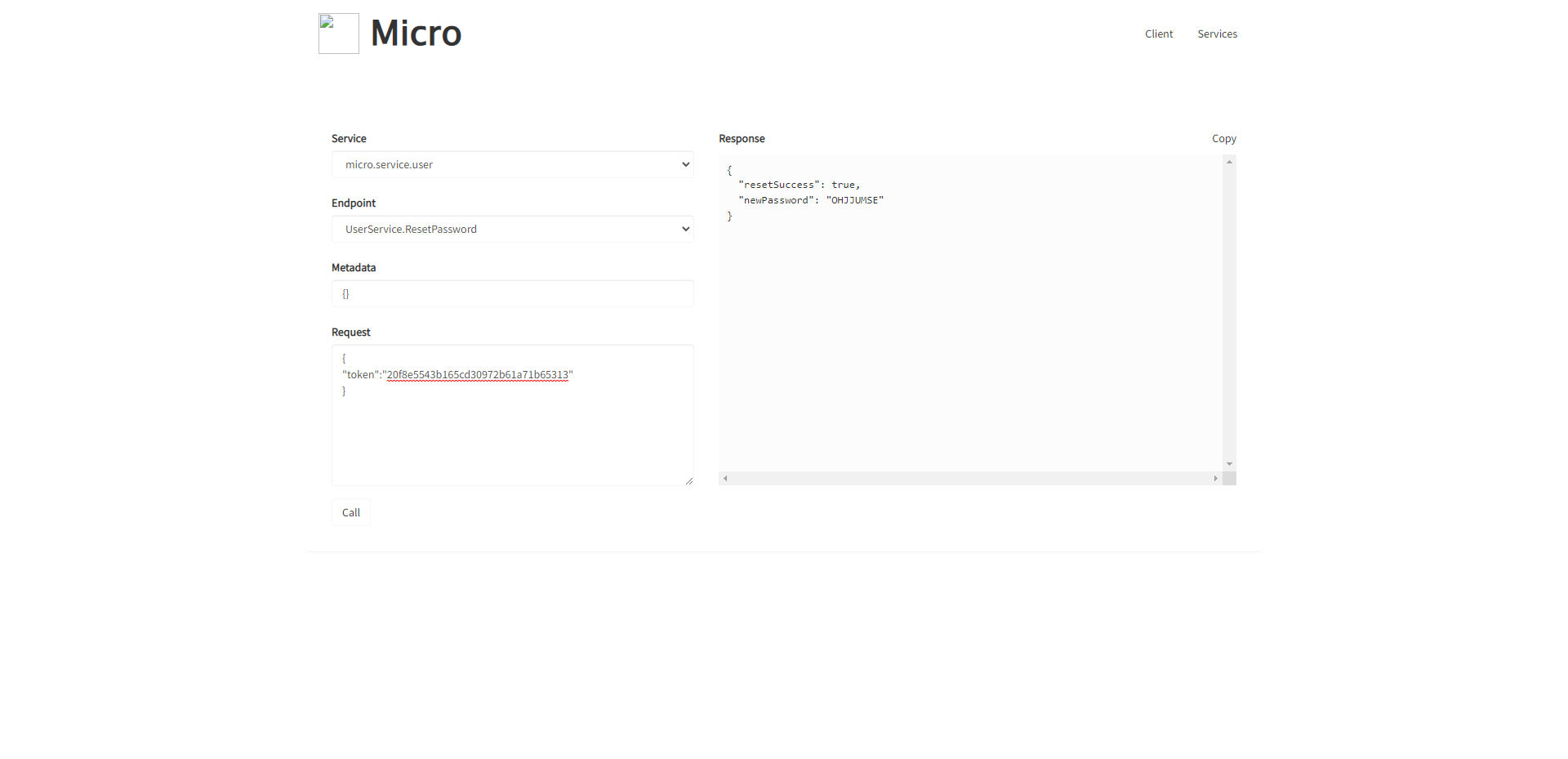 ...// CreatePasswordReset 创建密码重置记录func (srv *UserServiceHandler) CreatePasswordReset(ctx context.Context, req *pb.CreatePasswordResetRequest, rsp *pb.PasswordReset) error {//1.获取提交邮箱,检查用户是否存在_, err := srv.UserRepo.GetByEmail(req.Email)if err != nil {return errors.NotFound("User.CreatePasswordReset.GetByEmail.Error", "user not found ,check you email")}passwordReset := &model.PasswordReset{}types.Fill(passwordReset, req)//2.生成md5保存到数据库passwordReset.Token = password.Md5Str(req.Email + time.Now().String())err = passwordReset.Store()if err != nil {return err}//3.返回响应信息types.Fill(rsp, passwordReset)return nil}// ResetPassword 重置密码func (srv *UserServiceHandler) ResetPassword(ctx context.Context, req *pb.ResetPasswordRequest, rsp *pb.ResetPasswordResponse) error {//1.执行重置逻辑newPassword, err := srv.PasswordService.Reset(req.Token)if err != nil {return err}//2.返回新密码rsp.ResetSuccess = truersp.NewPassword = newPasswordreturn nil}...