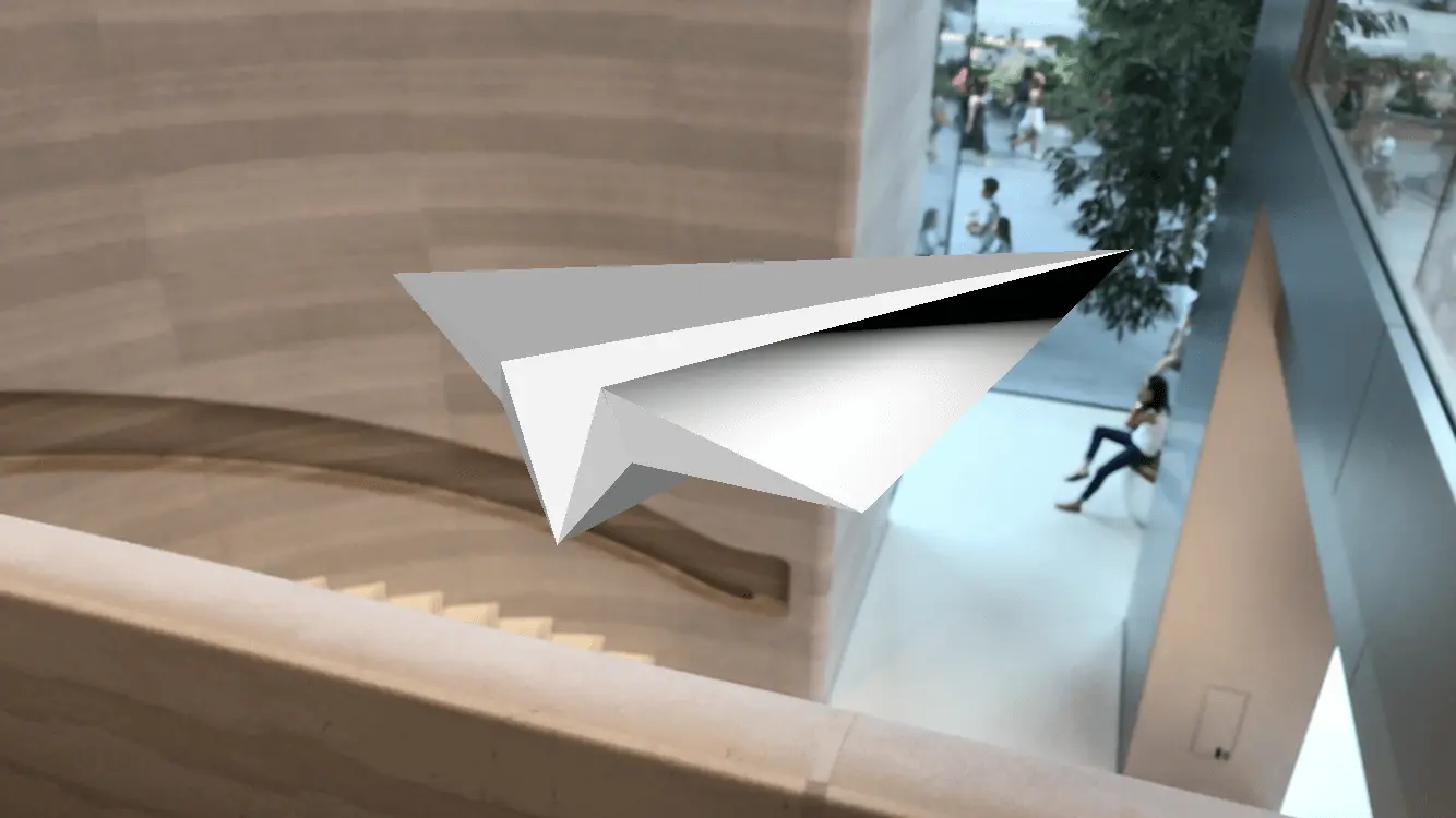 func addPaperPlane(x: Float = 0, y: Float = 0, z: Float = -0.5) {guard let paperPlaneScene = SCNScene(named: "paperPlane.scn"), let paperPlaneNode = paperPlaneScene.rootNode.childNode(withName: "paperPlane", recursively: true) else { return }paperPlaneNode.position = SCNVector3(x, y, z)sceneView.scene.rootNode.addChildNode(paperPlaneNode)}