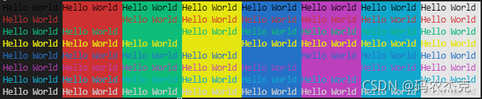 $text = 'Hello World';Write-Host "正常".PadRight(19),"高亮"Write-Host0..7 | %{Write-Host "`e[$($_+30)m$text`e[0m".PadRight(30),"`e[$($_+90)m$text`e[0m";}