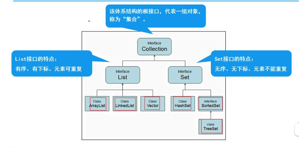 - Collection,List,Set都是接口需要下面的实现类进行实现之后才可调用。