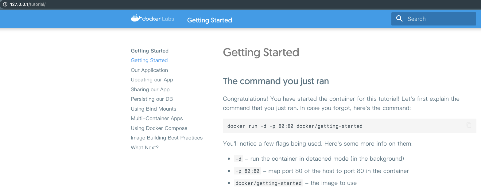 docker run -d -p 80:80 docker/getting-started