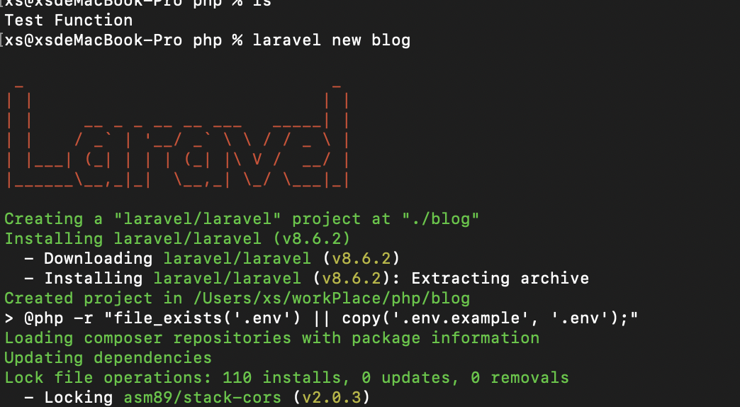 ## 先切根目录## 1. composer 使用阿里云镜像composer config -g repo.packagist composer https://mirrors.aliyun.com/composer/## 2. Composer 安装 Laravel 安装器composer global require laravel/installer## 3. 一定不要忘了添加环境变量,要不找不到。我添加的是用户级别的配置vim /Users/xs/.bash_profile## 添加配置export PATH = "/Users/xs/.composer/vendor/bin:$PATH"## 配置生效source ~/.bash_profile## 4. 任意目录下载laravel new blog