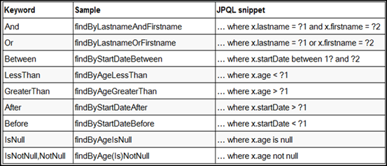 SpringData 的方法定义规范SpringData 的方法定义规范