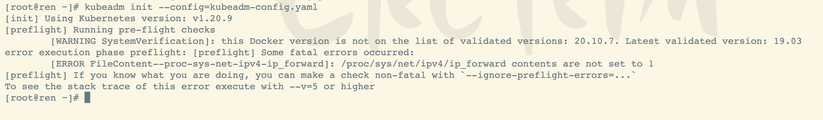 [ERROR FileContent—proc-sys-net-ipv4-ip_forward]: /proc/sys/net/ipv4/ip_forward contents are not set to 1
