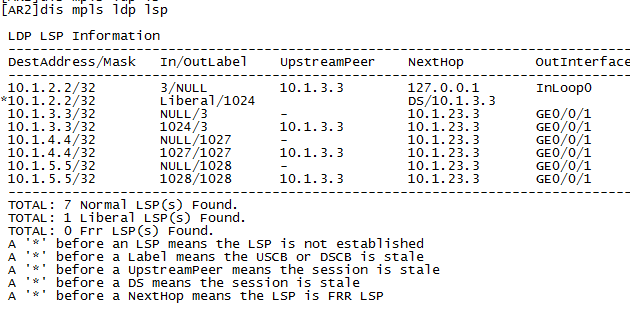 - 在华为的教程中,要求我们查看NHLFE表(Next Hop Lable Forwarding Entry),即使用命令mpls lsp include x.x.x.x mask verbose,实际上是弄得有些复杂了。