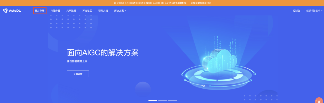 12、当看到蓝色的URL时,则表示运行成功了,然后返回AutoDL下自己的服务器