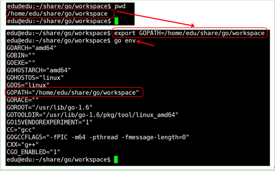 为了能够构建这个工程,需要先把所需工程的根目录加入到环境变量GOPATH中。否则,即使处于同一工作目录(工作区),代码之间也无法通过绝对代码包路径完成调用。