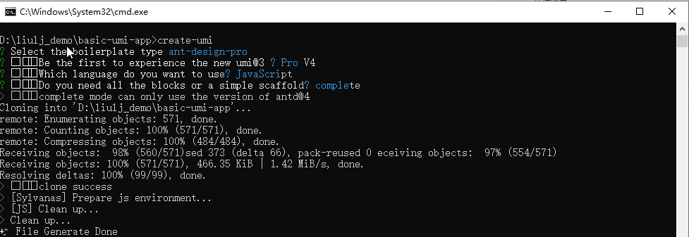- 选择安装Ant Design Pro的所有模块还是安装简单的脚手架