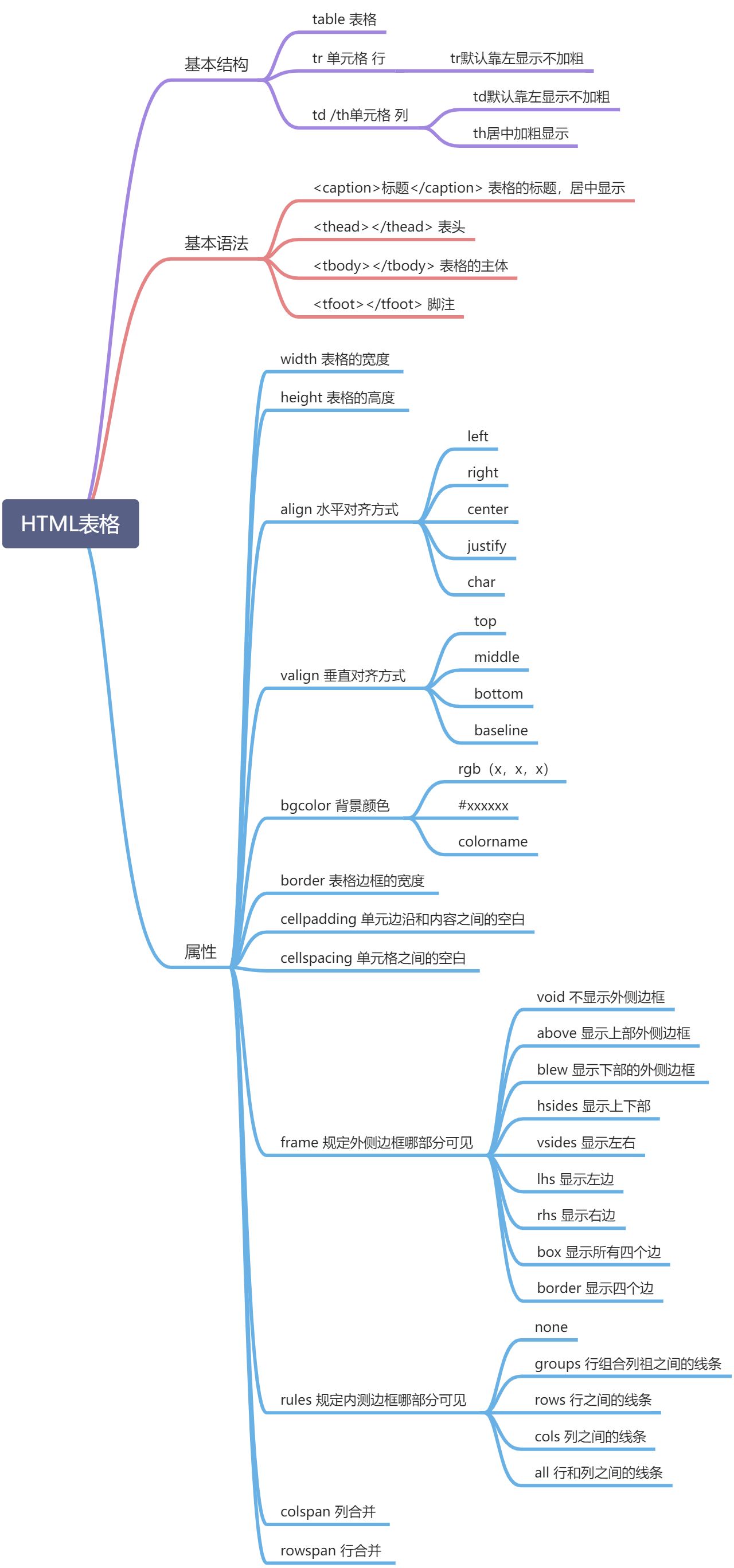 table表格的属性: