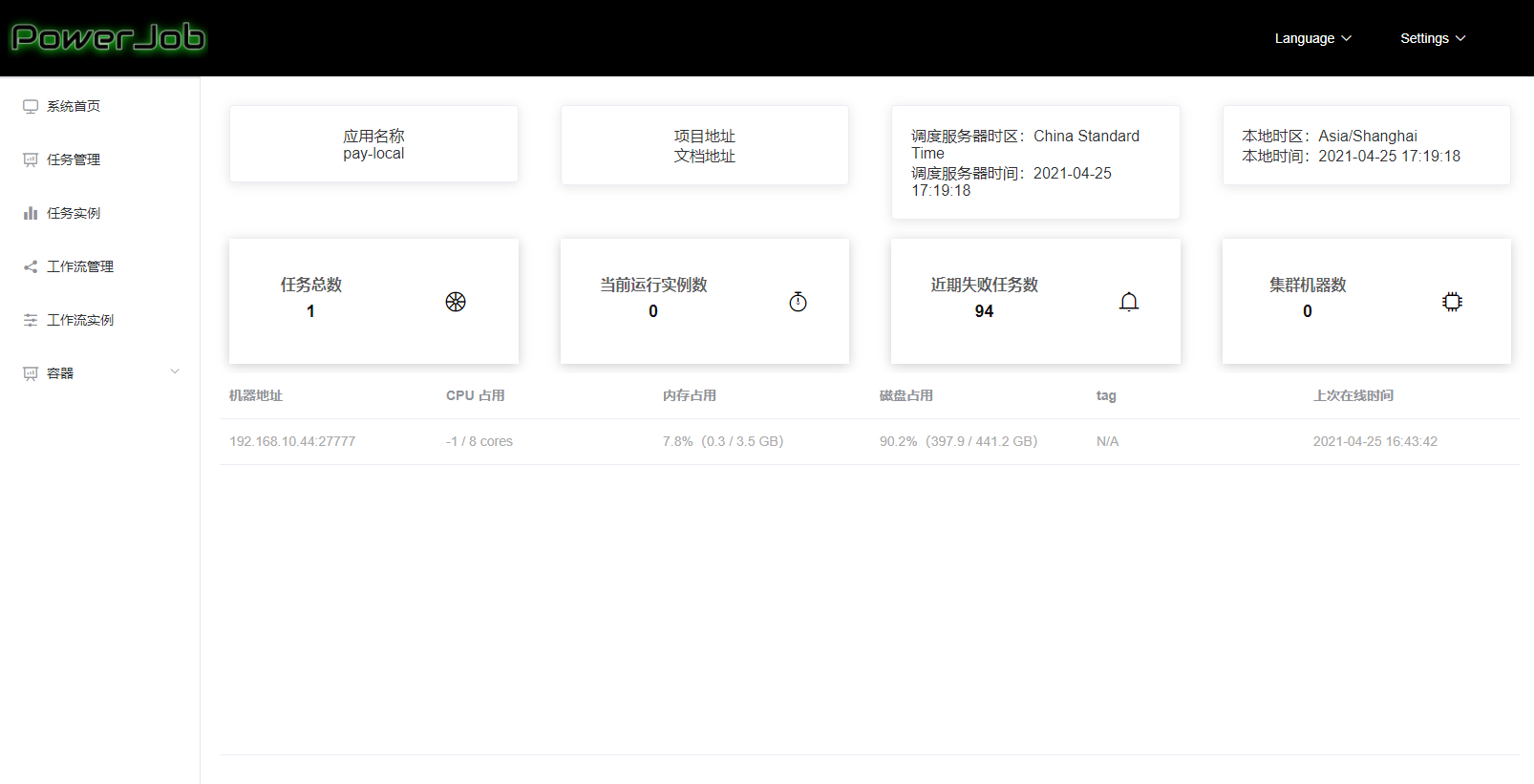 powerjob:worker:server-address: 192.168.3.25:7700app-name: pay-local# akka-port: 27777max-appended-wf-context-length: 16384max-result-length: 16384store-strategy: disk