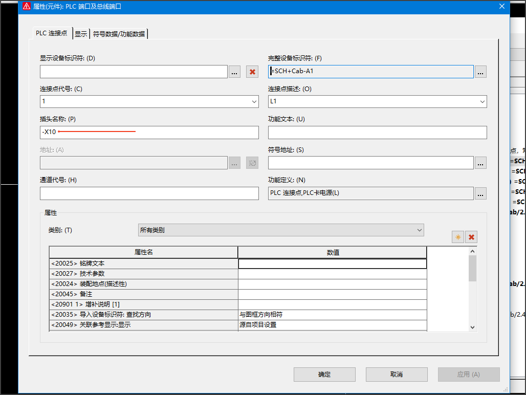 所以一个连接点的完整设备标识符是=SCH+Cab-A1:-X10:1