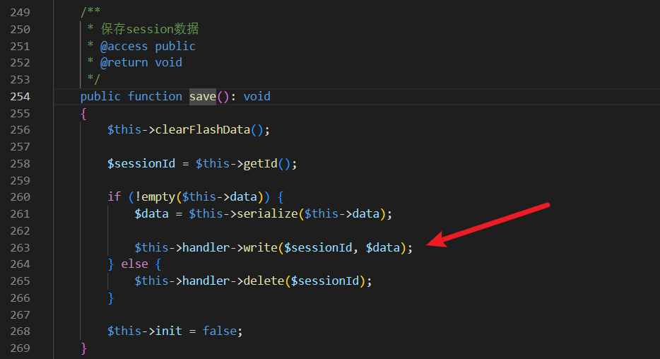 vendor\topthink\framework\src\think\session\Store.php#save 函数,在 data 不为空后会进入 write 操作,在 data 为空后会进入 delete 操作,这里追踪 write 函数,先看任意文件写入漏洞