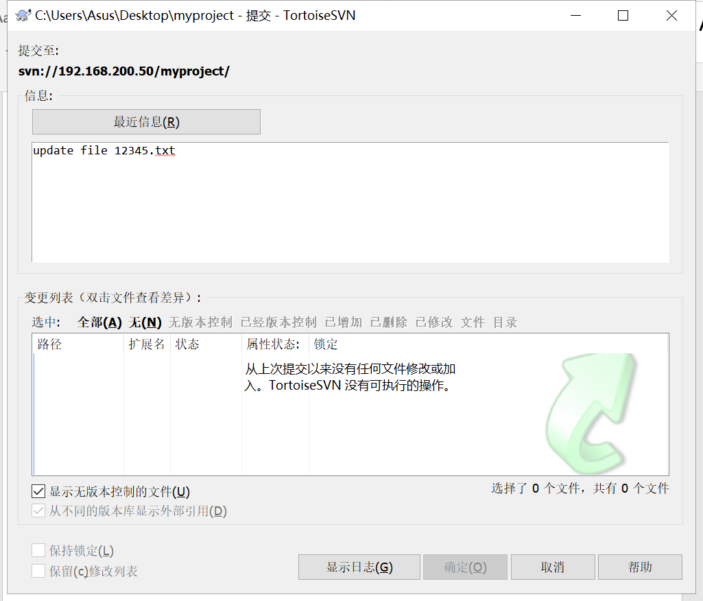 [root@client myproject]# svn commit -m “2update 123.txt file”