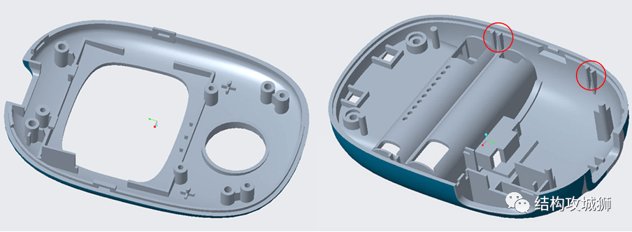 比如下图中同样是电池盖,但是应用在充电宝和遥控器上卡扣的设计就会不同。