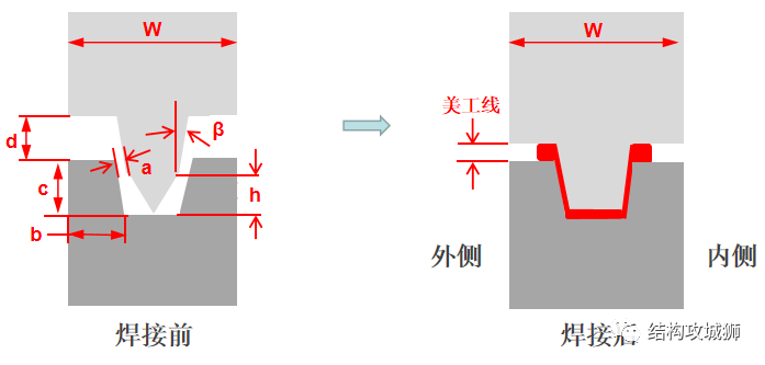 - 焊接深度h,焊接强度取决于焊接深度,焊接深度一般建议是壁厚W的0.75倍,一般经验认为,当焊接深度达到0.8-1.5mm,焊缝处的焊接强度与周围壁本体相当,若焊接强度要求超过周围壁本体的接强,建议焊接深度为壁厚W之1.25倍。