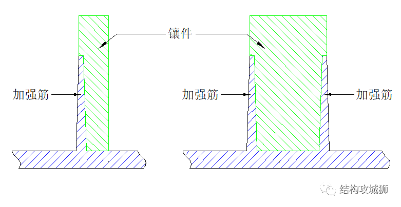 注意:当加强筋的高度H比较高,面积又比较大时,在保证强度情况下,应设法降低加强筋的面积,可采用以下方式: