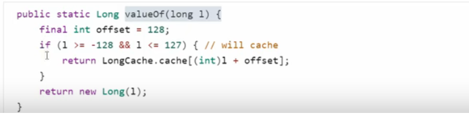 例如 Long 的valueOf会缓存 - 128~127之间的 Long 对象,在这个范围之间会重用对象,大于这个范围,才会新建 Long 对象