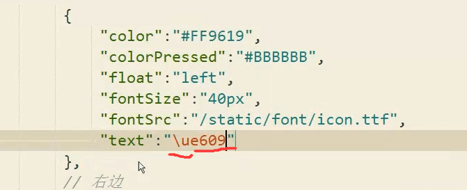 "buttons": [// 左边{"color": "#FF9616","colorPressed": "#BBBBBB","float": "left","fontSize": "40px","fontSrc": "/static/font/icon.ttf"}]